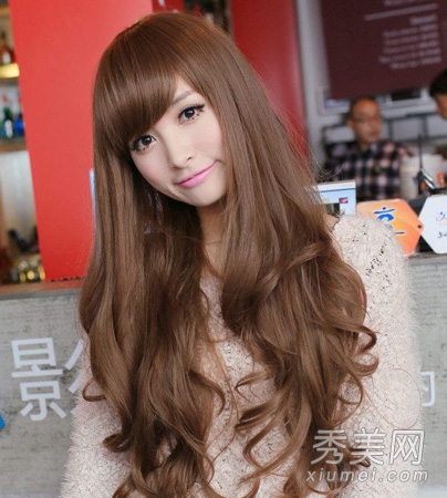 亚麻色的长卷发适合皮肤较白的MM,日韩系的范儿,加上彩妆和美瞳的效果会很赞!