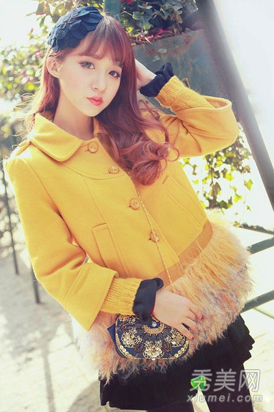 流苏衣摆毛呢外套,明亮黄色是今年大热的色彩,可爱精致透着时髦大方的气质。内搭黑色打底衫,下穿黑色蓬蓬裙,黑色裤袜,短靴,尽显名媛淑女范儿。